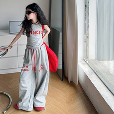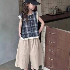 女童夏季套装2025无袖新款中大童休闲洋气宽松阔腿裤小女孩两件套