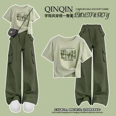 女童夏季工装裤套装2025新款潮酷正肩短袖中大童多巴胺运动两件套
