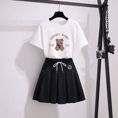 女童夏季套装裙子2025新款12岁中大童薄款短袖t恤腰裙打底半身裙