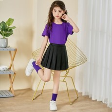 百褶裙套装半身裙女童jk裙子夏季儿童百褶裙女大童黑色带内衬短裙