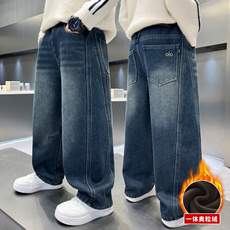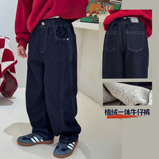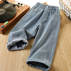男童裤子秋冬加绒新款儿童牛仔裤中大童保暖一体绒阔腿裤冬季长裤