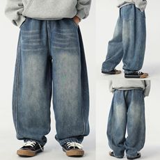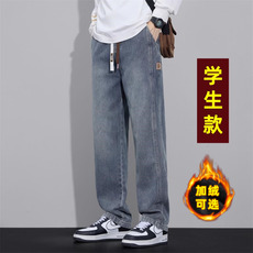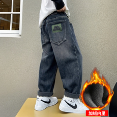 冬天男童加绒牛仔裤中大童一体绒保暖长裤加厚宽松长裤棉裤中大童
