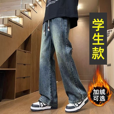 男童秋冬裤子2025新款中大童加绒直筒长裤春秋儿童洋气宽松牛仔裤