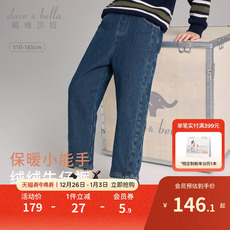 戴维贝拉男童加绒牛仔裤2025冬装新款中大童休闲裤子儿童洋气长裤