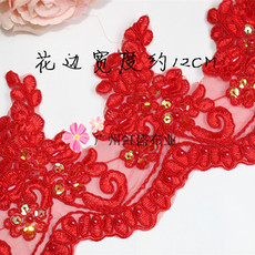 金银彩色大红色舞台服装婚纱头纱车骨钉珠亮片花边辅料蕾丝大红色