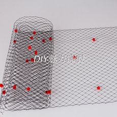 黑色网纱配大红色绒点点新娘头纱面纱婚纱礼服 DIY手工头饰配饰品
