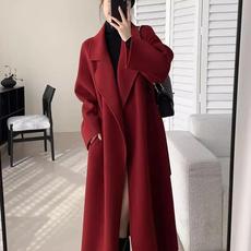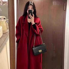 酒红色双面羊毛大衣女新年跨年新娘敬酒服高级感中长款毛呢外套女