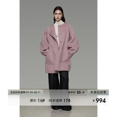 UNSPOKEN100羊毛粉色双面呢大衣女冬季宽松高级感中长款毛呢外套
