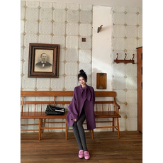 黄亮Elovey 一眼心动的漂亮紫-绵羊毛中长款双面呢大衣外套女秋冬