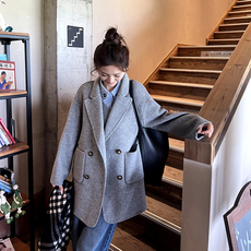 毛呢外套女中长款羊毛呢子大衣 kbne2025新款秋冬西装领宽松上衣