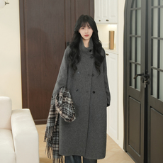 桃可了 灰耳兔 桑蚕丝中长款宽松加厚羊毛双面呢毛呢大衣女冬季