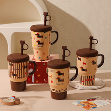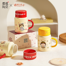 卡通随行杯手握杯景德镇手绘陶瓷插画带盖吸管杯水杯大容量马克杯
