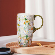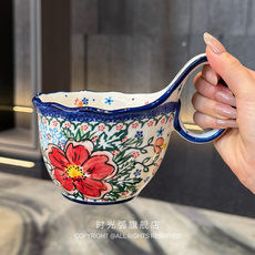 儒笙宝相花手工可乐杯大容量咖啡杯带盖陶瓷办公室复古高颜值茶杯