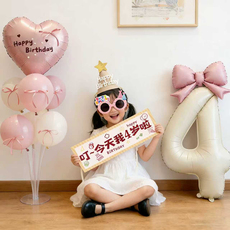 女孩宝宝儿童家庭版生日派对装扮布置铝膜数字气球条幅拍照仪式感