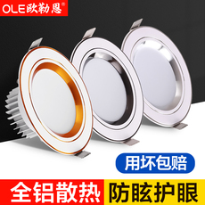 led筒灯嵌入式家用射灯客厅吊顶天花板天花孔灯洞灯简灯三色5w3w
