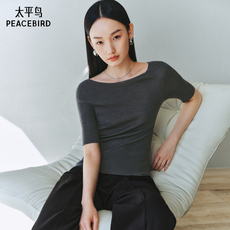太平鸟无缝一体短袖毛针织衫25春夏新款可机洗内搭打底衫含绵羊毛