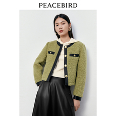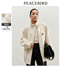 【清仓】太平鸟绵羊毛拼接夹克大衣女冬装廓形立领时尚毛呢