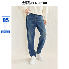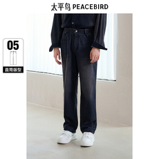 太平鸟男装牛仔裤24冬新款复古做旧耐磨水洗宽松直筒柔软牛仔裤
