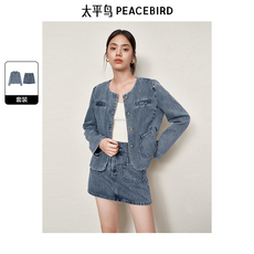 太平鸟男装复古蓝色格纹牛仔夹克25秋新款宽松工装休闲茄克外套