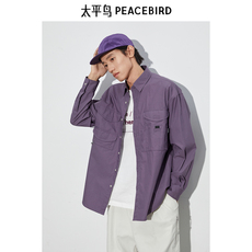 太平鸟男装 紫色工装衬衫男春夏季阔版外穿式户外长袖衬衣潮