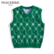 太平鸟男装奥莱 春满印提花v型领背心毛衣
