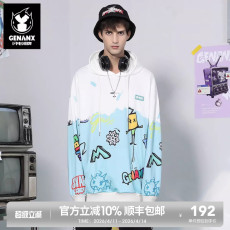 GENANX闪电潮牌抽绳连帽卫衣涂鸦印花国潮袋鼠兜太空棉情侣装上衣
