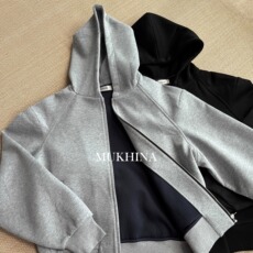 松弛慵懒风 版型好 修身显瘦连帽短款太空棉双拉链长袖卫衣外套女