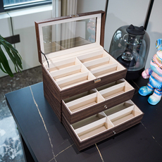 12位黑胡桃木眼镜墨镜首饰收纳盒双层大容量高档精致太阳镜展示盒
