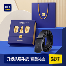 HLA/海澜之家男士皮带真皮自动扣新款头层牛皮腰带送老公爸爸礼物