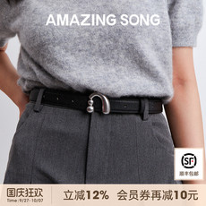 Amazing Song乙颂撞色皮带新款头层牛皮可调节女士腰带配饰