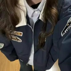 美式高街刺绣字母棒球服女春秋季新款宽松百搭撞色学院风夹克外套