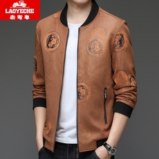 老爷车春季新款青年潮牌狮子头印花夹克男韩版修身帅气棒球衫外套