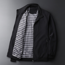 BM男士外套原宿风休闲格纹皮夹克羽绒服男短款棒球领纯色潮流修身