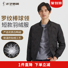 才子夹克羽绒服男2023冬季新款休闲白鸭绒黑色修身短款棒球领外套