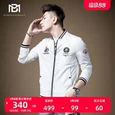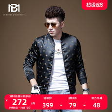 BM男士痞帅刺绣夹克英伦小蜜蜂外套男潮牌欧美街头修身棒球服薄款