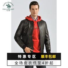 圣大保罗男装绵羊皮真皮皮衣秋冬款棒球领拉链袋修身休闲皮夹克男