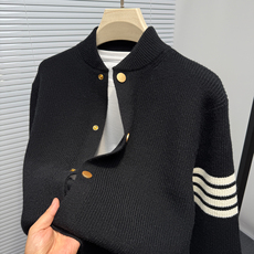 秋季男士开衫针织衫外套立领毛衣休闲潮流纯色棒球服修身夹克上衣