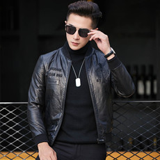 真皮皮衣男修身潮流绵羊皮棒球服皮夹克男机车服10-1633