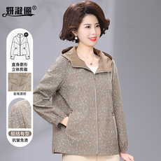五十岁中年妈妈秋装短款夹克宽松洋气中老年女装休闲连帽风衣外套