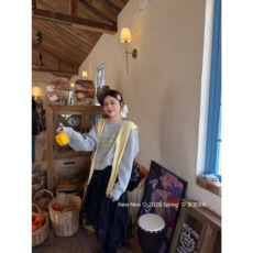 all over 26SS 东大门代购 甜系软妹少女风溜肩宽松套头长袖卫衣