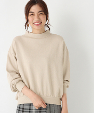 Basic House/百家好纯色圆领卫衣女士春季优雅淡紫色套头长袖T恤
