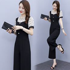 新款原创薄款长裤阔腿裤女夏装雪纺修身高腰连体衣套装 洋气 时尚
