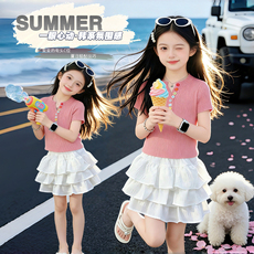 女童夏装套装洋气童装2026新款女中大童短袖蛋糕裙两件套潮小女孩