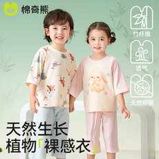 春秋季儿童睡衣短袖七分裤套装男女童睡衣男孩莫代尔中大童家居服