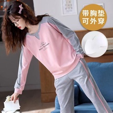 睡衣女士带胸垫春秋款秋季长袖薄款青年套装家居服秋冬季学生宿舍