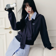 城南边儿10.20松乐棉系列~V领拼片长袖罩衫+松紧腰直筒裙遮肉套装