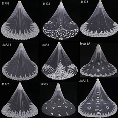新娘结婚头纱主婚纱配饰奢华超长大拖尾法式宫廷复古蕾丝花边双层