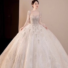 婚纱新娘2026新款 重工奢华高级质感蕾丝法式 长袖仪式主纱迎宾纱