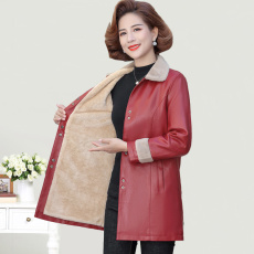 妈妈皮衣加绒加厚中长款冬装外套中年女人洋气皮草本命年皮毛一体