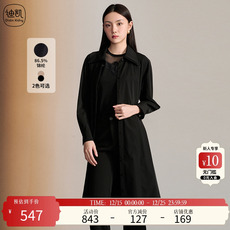 YUESPACE春秋女士风衣外套修身连帽中长款英伦时尚拉链显瘦黑色